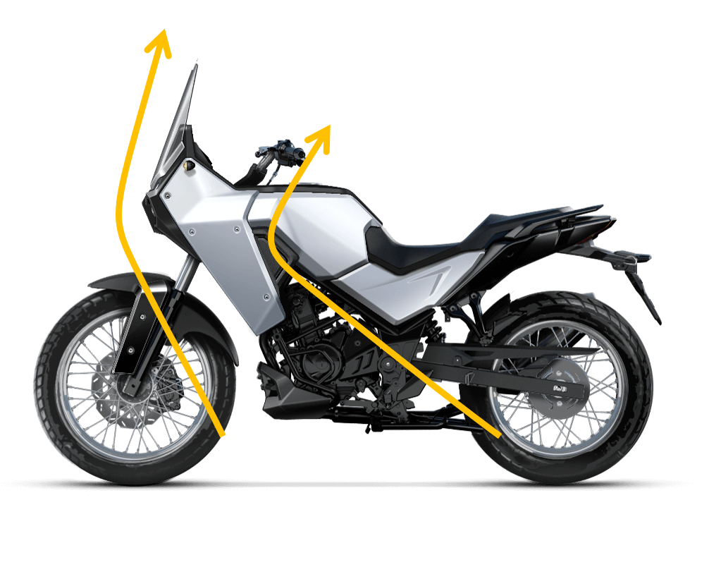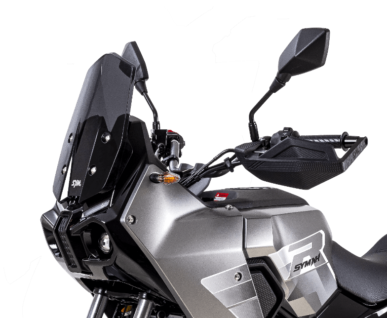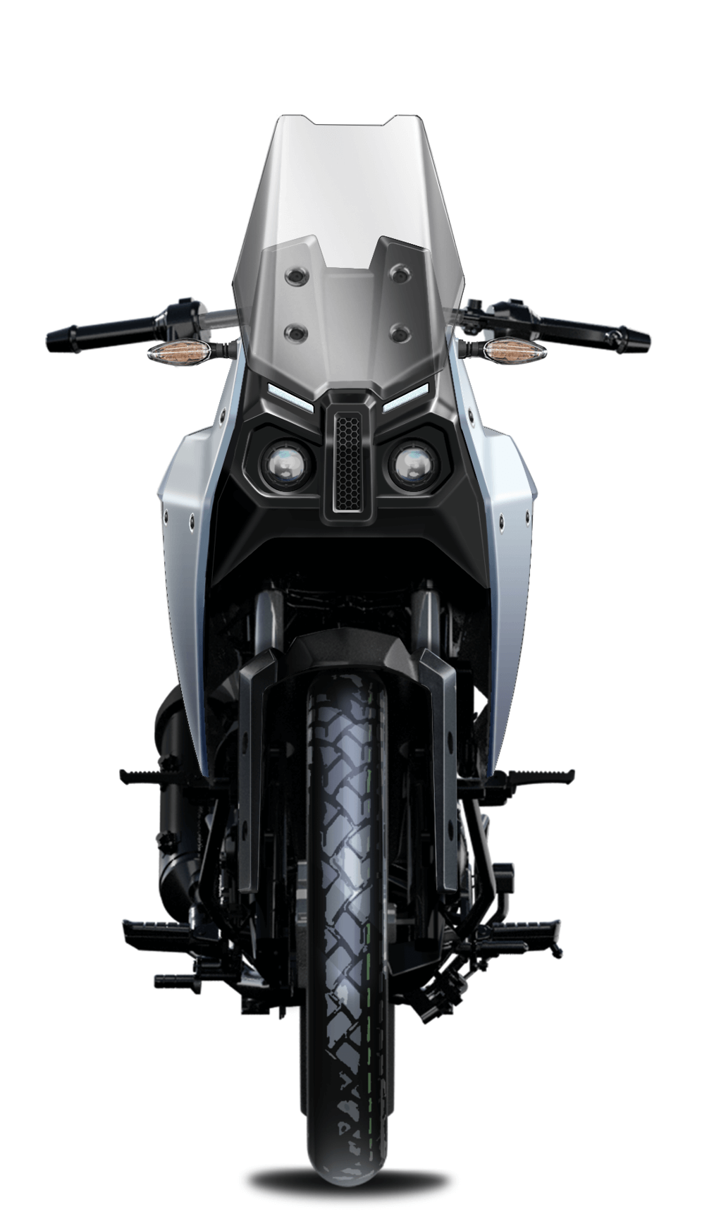The SYMNH R features an aggressive, Mecha-style front design that enhances its high-tech appeal and distinctive presence. Its rally-inspired exterior styling reflects a bold and youthful personality, characterized by an upright and elevated stance. This design not only reinforces the rugged aesthetics of an off-road rally bike but also supports the ideal riding posture—upright and tall—for improved visibility and better control across varying terrain.