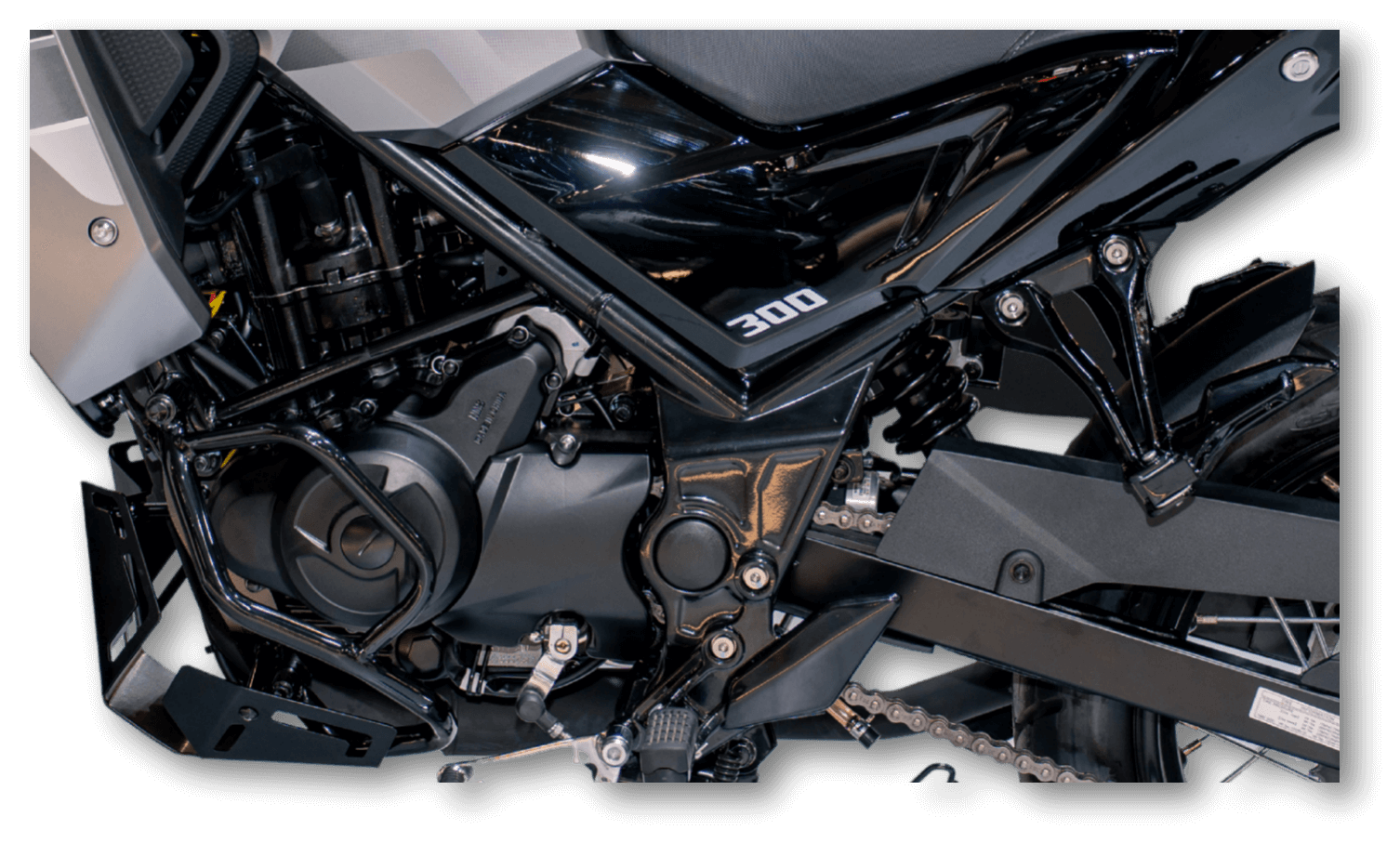 NHR comes standard with a skid plate and handguards, both designed for challenging rides. The metal skid plate is highly durable, boasts a refined appearance, and effectively prote